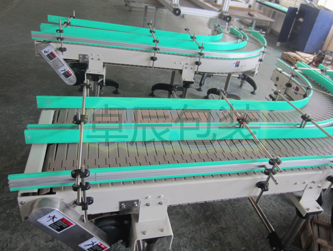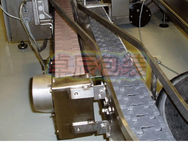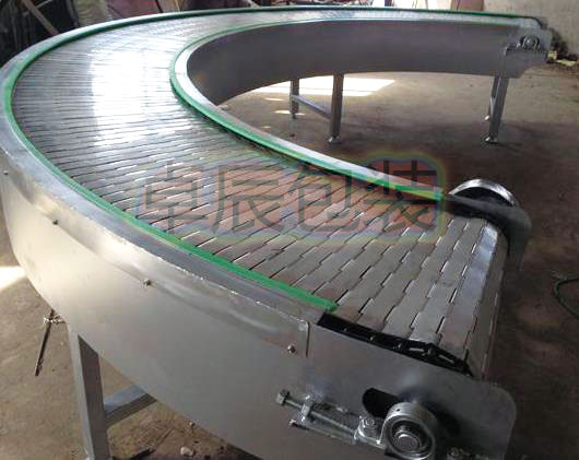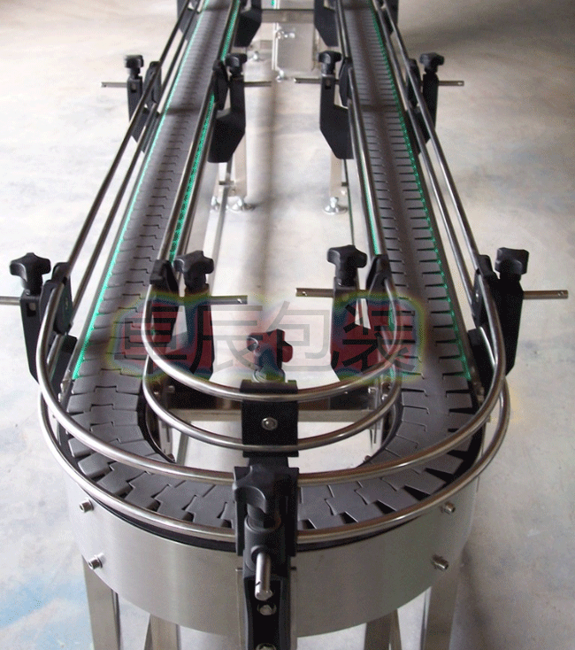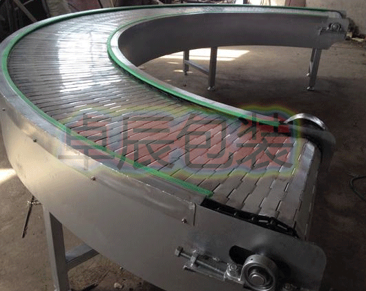 鏈?zhǔn)捷斔蜋C是在機器的兩側(cè)鏈條間加裝板式構(gòu)件,以達到輸送型態(tài)不規(guī)則的物品,在鏈板上加裝專用工夾具,并根據(jù)工控要求可作為裝配線,或直接采用塑鋼平頂鏈或不銹鋼平頂鏈作為輸送載體。使用轉(zhuǎn)彎鏈板即可 使用90度轉(zhuǎn)彎。